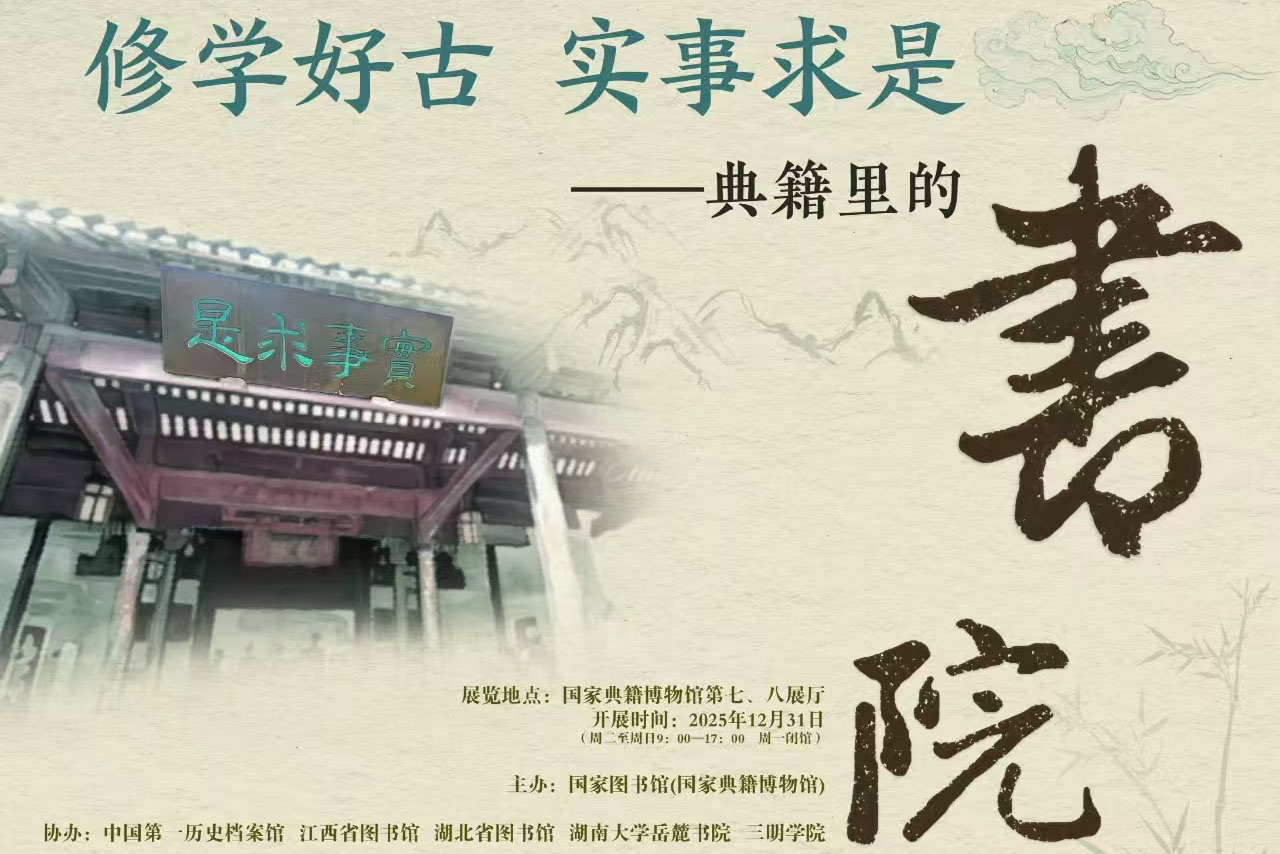 2025年12月31日,“修学好古 实事求是——典籍里的书院”展览在国家典籍博物馆第七、八展厅开始预展(每周一闭馆,节假日另行通知)。