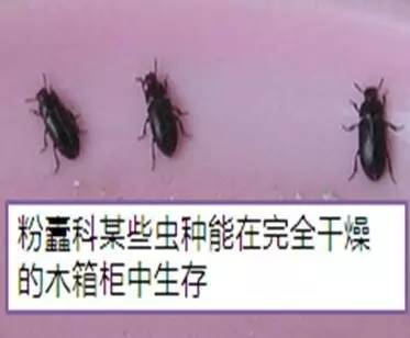 危害藏品的某些昆虫耐干能力很强。在空气相对湿度低于60%的环境中,大多数昆虫是不适应的,但这类昆虫则能生存下去,特别是鞘翅目科的害虫,仅仅依靠空气及载体材料中(如书、书板、柜架等)的正常含水量就可能满足生存的需要,并完成其整个生命周期。