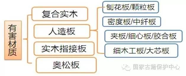 随着森林资源的日益匮乏,高级木材越来越少,人造板、实木再加工产品大量取代实木作为古籍柜架或是用它作为隔板、衬板等。下图是古籍柜架装具中可能遇到的有害材质。