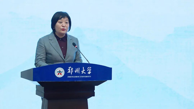 王沛在致辞中充分肯定了近年来河南省的古籍保护工作。她表示,国家古籍保护中心长期致力于推动全国古籍保护事业的协同发展,希望通过开展“古籍保护课程进校园”活动,将优质专业资源引入高校教学实践,推进古籍保护学科建设,为古籍保护事业的可持续发展打造后备力量,推动中华优秀传统文化传承与弘扬。