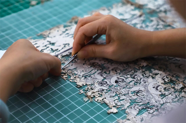 本次修复聚焦前两期未攻克的复合型病害,针对南方潮湿环境导致的经纸深度虫蛀、粘连,以及历代修补造成的多层补纸重合等难题。专家组遵循“修旧如旧”的修复方案,首先对原经叶的纸质进行检测分析,再科学配比出修复所需的与原经叶纸质、颜色高度相似的纸浆。纸浆补书机的针对性应用,保证了遭遇严重虫蛀侵害的经叶修复后的整体平整度。遇到粘连严重的经叶,采取“干揭法”和“湿揭法”相结合的方式,将前后经叶小心分开,再摊平之后,用纸浆补书机修复。