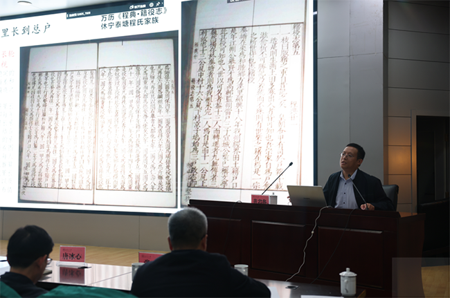 暨南大学文学院历史系副教授、教研室主任黄忠鑫带来了主题为“徽州文书中的明清户籍与地籍” 的精彩分享。黄教授围绕户帖、黄册等户籍文书及鱼鳞图册等地籍文献,结合自身研究成果与生动案例,细致解读了徽州文书的形制特点与历史价值。从文书中记载的土地字号分配,到清代图甲户籍的运作细节,他用通俗的语言还原了明清时期国家典章制度在地域社会的落地实态,带领在场师生透过泛黄纸页触摸历史温度,深刻感悟古籍中这一珍贵特藏作为“活态历史档案”的文化分量。