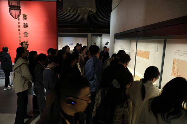 当日下午,培训班组织学员赴孔子博物馆开展现场教学。在曲阜师范大学丁延峰教授的全程讲解与引导下,学员们近距离观摩了“鲁壁重光:唐宋元珍贵古籍特展”。该展览是2025年山东省藏书大会暨中华传统晒书活动的重头戏,是近年来山东举办的重要展览,共展出公私收藏的我国历代珍稀典籍、文物130件,展品等级高,影响大。丁教授从版本特征、纸张墨色、递藏源流等角度细致剖析,使学员们不仅领略了珍贵古籍的文献与艺术价值,也加深了对古籍保护修复重要性的理解。
