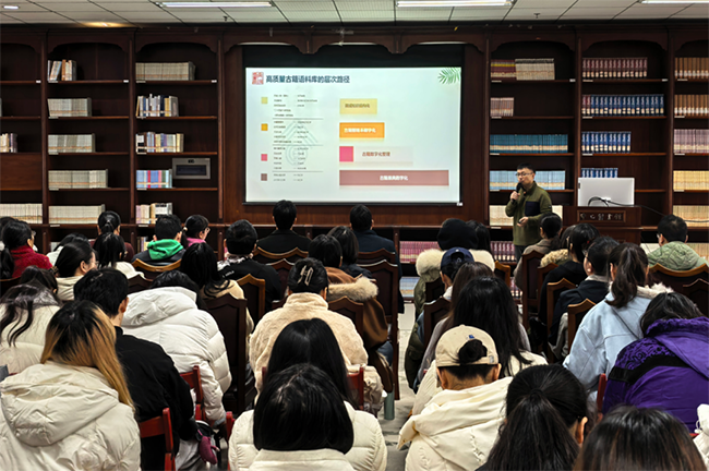 本次讲座特别邀请中华书局总经理助理、古联(北京)数字传媒科技有限公司总经理洪涛编审为师生们带来《古籍数字化的发展趋势》专题讲座。洪涛老师作为中宣部出版局新闻出版业科技与标准重点实验室——古籍数字化与知识工程重点实验室负责人,长期从事古籍数字化研究和出版工作,主持“十二五”、“十三五”多项国家古籍重点数字化出版规划项目,对古籍数字化的整体建构与项目经验、行业发展等均有着许多深入、前沿的见解。