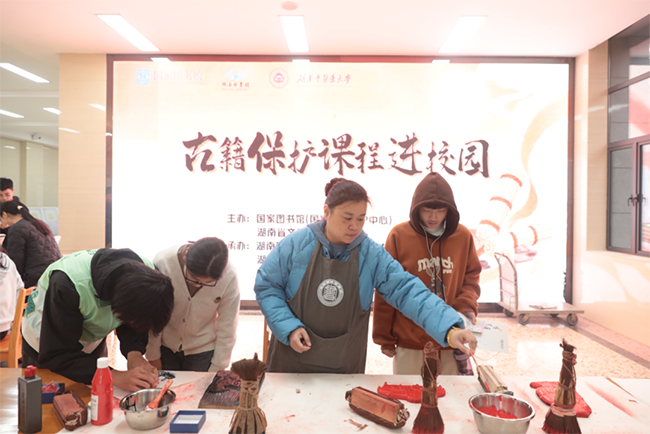 此次“古籍保护课程进校园”湖南站系列活动已在湖南省内四所高校相继开展。古籍保护专题讲座、雕版印刷非遗技艺体验活动、珍贵版本古籍展、中医古籍图书展览、古籍数据库宣传推广等活动,宛如一场场跨越时空的文化对话,将古籍保护的“根”与“魂”植入青年学子血脉中,为中华优秀传统文化的赓续发展铺就年轻一代的坚实步履。