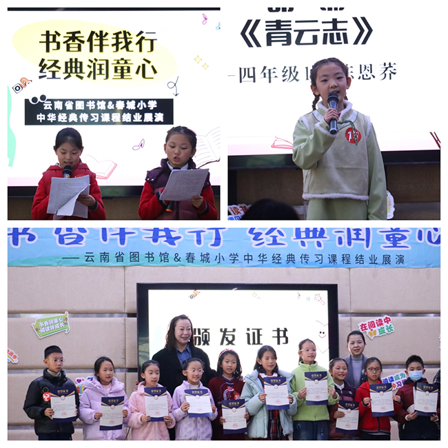 2025年,云南省图书馆中华经典传习所与春城小学教育集团合作,以《中华传统文化百部经典》中的《论语》《徐霞客游记》为核心读本,融入云南本土文化元素,完成了10期40学时的经典传习课程。