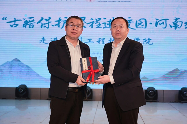12月17日下午,由国家图书馆(国家古籍保护中心)主办,河南省图书馆(河南省古籍保护中心)承办,郑州工程技术学院文化遗产与艺术设计学院协办的“古籍保护课程进校园·河南站”活动在郑州工程技术学院(金河校区)举行。