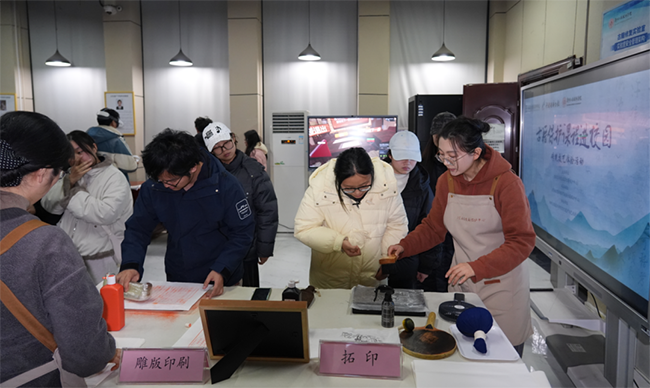 古籍技艺体验活动在校内同步开展。河南省图书馆(河南省古籍保护中心)的古籍修复师现场展示了石碑传拓、线装书装订等传统技艺,并为广大师生讲授了古籍保护与非遗传承知识。