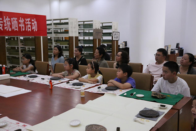 一幅幅凝结着心血与匠心的传拓作品,承载着历史的厚重感,穿越时空的长河,向大家走来,焕发着全新的光彩。徜徉于墨迹鲜妍的拓片中,大家或驻足欣赏,或交流心得,现场洋溢着浓厚的“晒书”文化氛围。