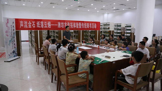 7月19日上午,潍坊市图书馆四楼地方文献室书香弥漫,墨韵流淌。一场名为“声流金石 纸落云烟”的传拓体验暨传统晒书活动,吸引了众多市民前来“打卡”。大家在这里亲手触摸历史的温度,体验了一项传承千年的古老技艺——传拓。