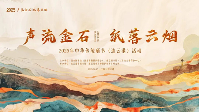 8月15日上午,由国家图书馆(国家古籍保护中心)、江苏省图书馆(江苏省古籍保护中心)主办,连云港市图书馆、连云港市文物保护和考古研究所承办的“声流金石 纸落云烟”2025年中华传统晒书(连云港)活动在连云港市图书馆二楼书香大厅隆重启幕。