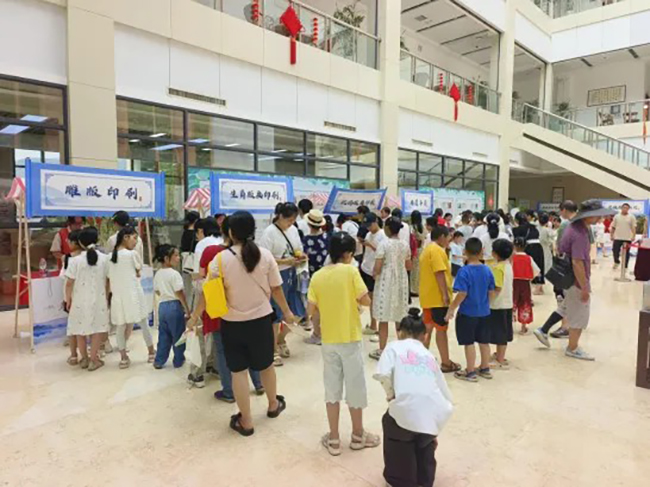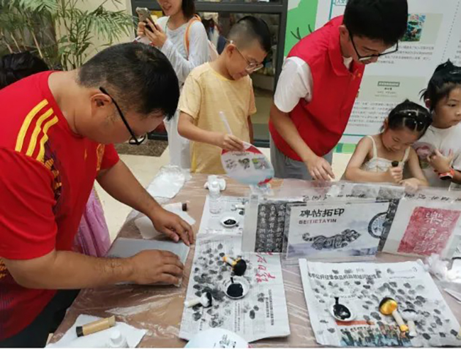 为响应国家图书馆(国家古籍保护中心)号召,以古籍为媒,推动全民阅读深入开展,让书写在古籍里的文字焕发时代光彩,走进市民文化生活,黄石市图书馆精心策划并推出了“声流金石 纸落云烟”2025年“晒书节”系列活动。7月26日,“晒书节”系列活动启动式暨传统文化集市在市图书馆成功举办。活动通过“古书之美”——中国古籍文化讲座、图书馆馆藏碑帖舆图推介展和碑帖拓印、雕版印刷、甲骨文图案创作、古籍装帧等十大非遗文化体验,为市民打造了一场沉浸式的传统文化盛宴,吸引了众多市民热情参与。