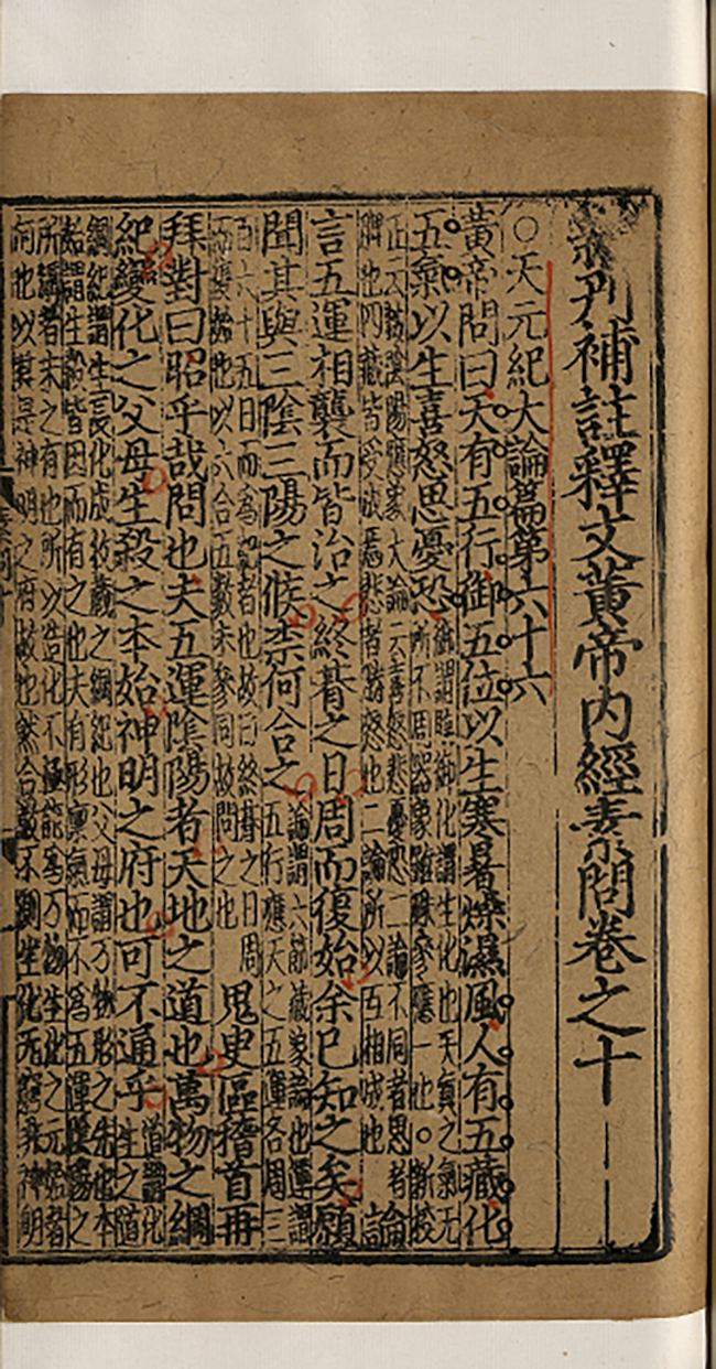 元后至元五年(1339)胡氏古林书堂刻本《新刊补注释文黄帝内经素问》2011年入选《世界记忆名录》