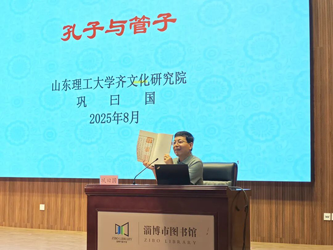 山东理工大学齐文化研究院巩曰国教授带来的“孔子与管子”专题讲座,成为整场活动的“知识亮点”。巩教授带领大家从成语中探寻孔子与管子的人生轨迹,揭秘孔子“仁政”与管子“法治”的互补与对立关系,感受其治国理念、处事哲学的博大精深。