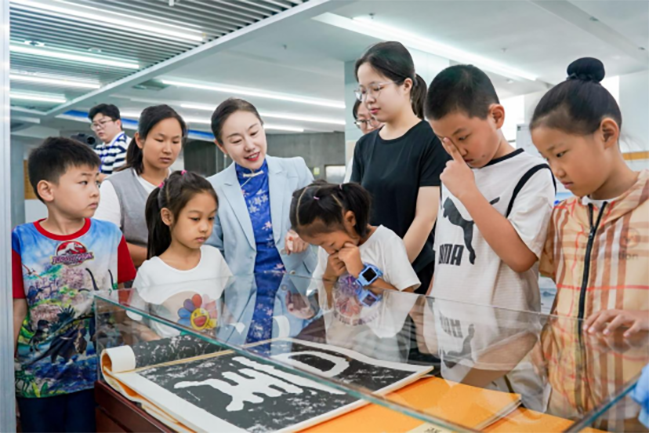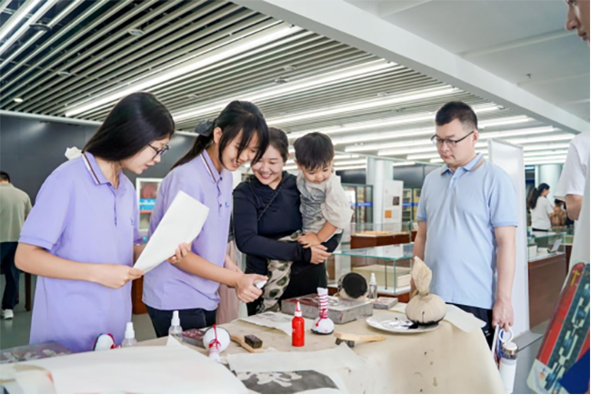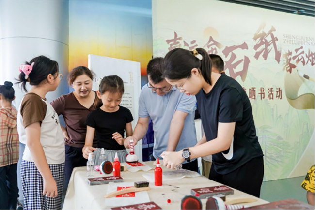 体验区则成为本次活动最具人气的区域。“墨拓留痕”金石拓片体验活动邀请了非遗传承人进行现场演示与教学,从上纸、捶打到上墨,完整再现传统拓印技艺的全过程。活动现场准备了多套拓印工具和特制碑刻复制品,吸引了大量亲子家庭与年轻读者亲手实践。小朋友们手持拓包,在志愿者的指导下精心制作,当一张张清晰的拓片从“石碑”上成功揭下时,现场充满了成就感的欢声笑语。