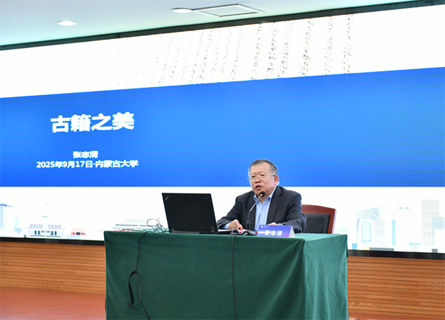 2025年9月17日下午,由国家图书馆(国家古籍保护中心)主办,内蒙古自治区图书馆(内蒙古自治区古籍保护中心)、内蒙古大学图书馆承办的“古籍保护课程进校园·内蒙古站”活动在内蒙古大学隆重举行。国家图书馆原常务副馆长、国家古籍保护中心原副主任、中国古籍保护协会常务副会长张志清,内蒙古自治区文化和旅游厅副厅长刘鹏飞,内蒙古大学副校长达胡白乙拉,国家古籍保护中心办公室副主任王沛,内蒙古自治区文化和旅游厅公共服务处处长张丽辉,内蒙古自治区图书馆馆长何亚睿,联图科技董事长吕亚峰,以及内蒙古大学及相关院校师生代表100余人参加启动仪式。内蒙古大学图书馆馆长张慧荣主持仪式并宣布“古籍保护课程进校园”活动正式启动。