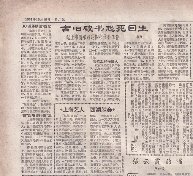 永义《古旧破书起死回生——记上海图书馆的图书修补工作》