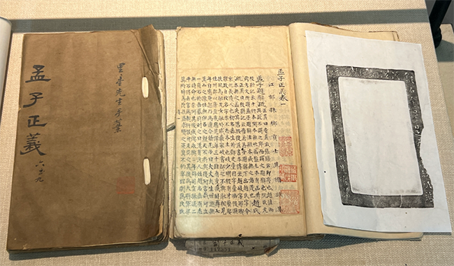 一个秋日的午后,我来到南京图书馆四层国学馆玄览堂,《书生报国 文脉薪传——文献保存同志会搜救珍籍选展》正在展出。展厅不大,墙上挂着展板画页,沿墙展柜里放着一部部纸页泛黄的古籍。每一部劫后余生的古籍都像是历尽沧桑的老人,刻满了历史的印记,无声地向后人诉说着一个抗战时期中国知识分子文化救国的动人故事。