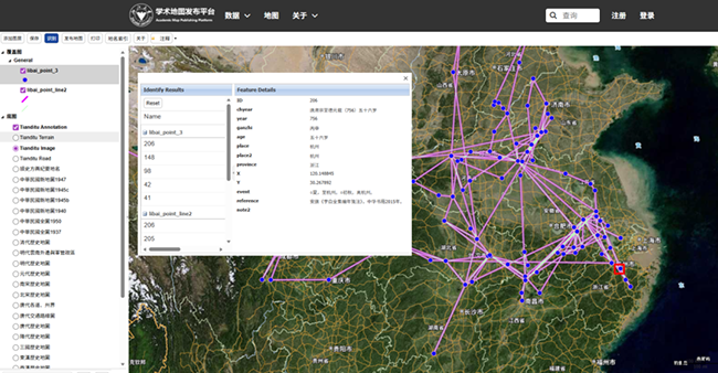 以学术地图发布平台为例,只要在该网站输入“李白”,系统便能将李白从公元701年出生至762年去世的动态轨道图,包括他在不同时间节点的社会活动情况等展示出来。