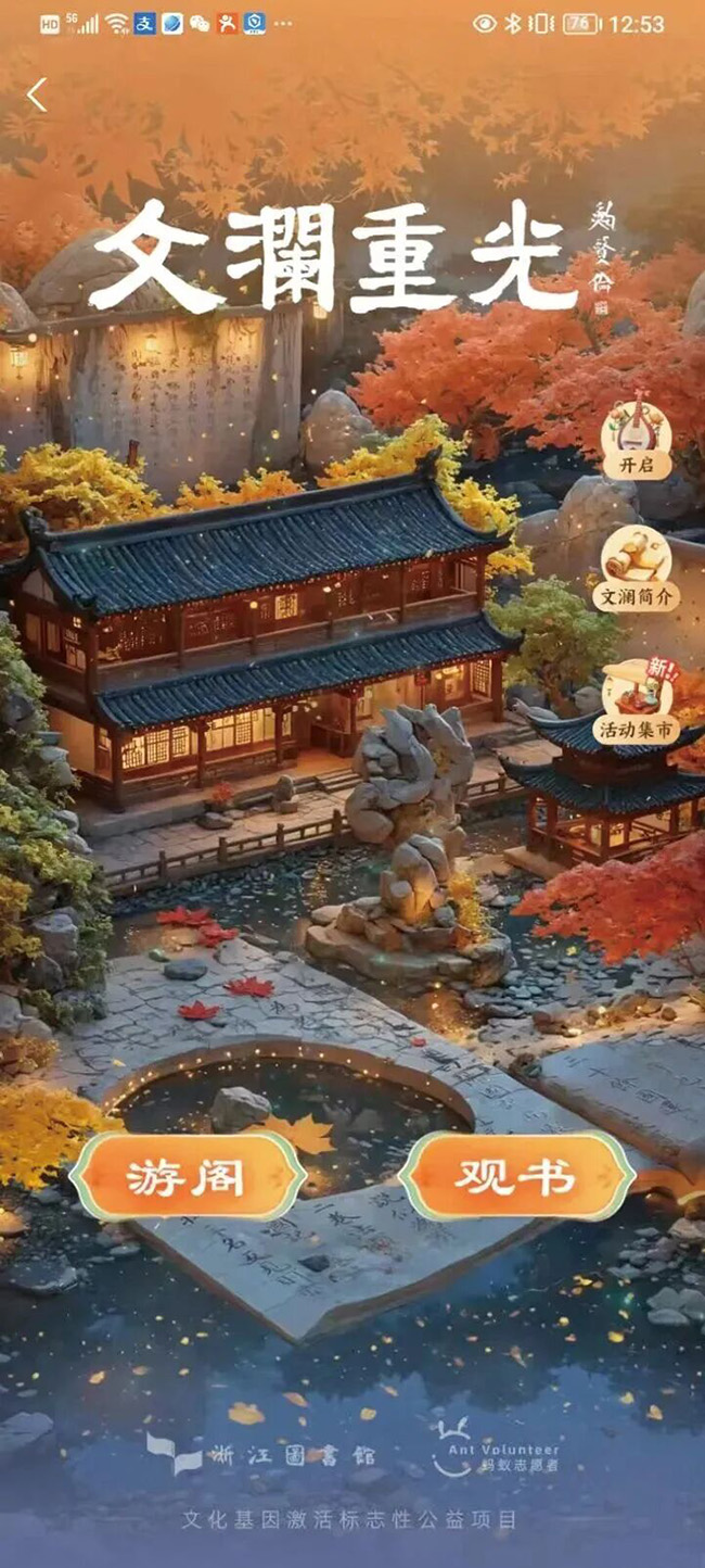 该项目通过MR混合现实、AI等数字技术,在支付宝小程序中重建了文澜阁,让用户能沉浸式“走进”虚拟楼阁、亲手“翻阅”典籍,并通过互动游戏与古籍内容深度接触。2025年,小程序2.0版本新增了角色探索、AI伴读等创新功能,进一步提升了趣味性和互动性,使古老经典以生动形式走近公众,尤其是年轻群体。