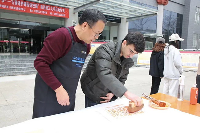 2023年,陕西省图书馆(陕西省古籍保护中心)积极响应国家古籍保护中心的号召,精心策划了“兰台青缃 石渠千华——古籍保护课程进校园”活动。此次走进陕西理工大学,是陕西省图书馆(陕西省古籍保护中心)自2023年3月创立该品牌以来开展的第8期活动,是首次走进西安市区以外的高校。该活动不仅丰富了校园文化生活,厚植了青年学子的文化自信,也让留学生们在亲身体验中读懂中国传统文化,进一步推动了中华优秀传统文化的传播。