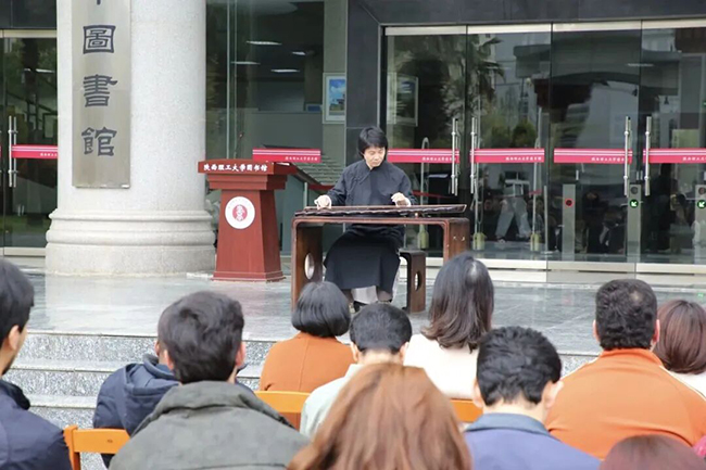 汉台区古琴协会曹奕、张雅竣、王能等带来了古籍活化利用创新性实践成果,现场演奏打谱《山居吟》、蜀派传统小曲《良宵引》、琴箫合奏《平沙落雁》,带领师生沉浸式感受古典音乐的雅致韵味,尽显中华传统艺术的深厚底蕴。