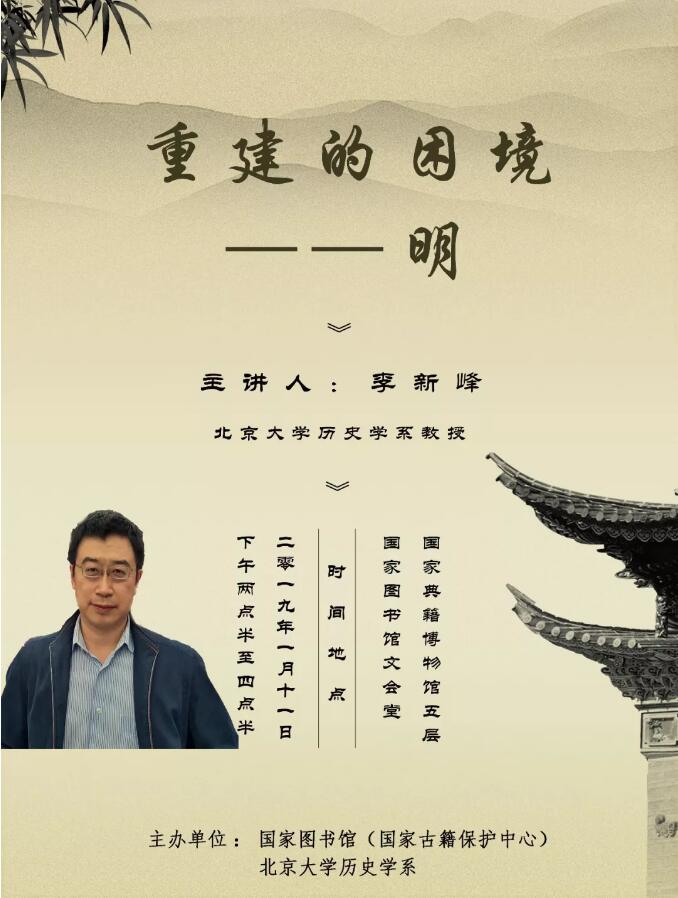 主讲人:李新峰,男,1970年生,北京大学历史学系教授。主要研究方向为明代政治史、制度史、历史地理、明代科举与官僚文人。代表作包括《明前期军事制度研究》《明代卫所政区研究》《纪事录笺证》等。