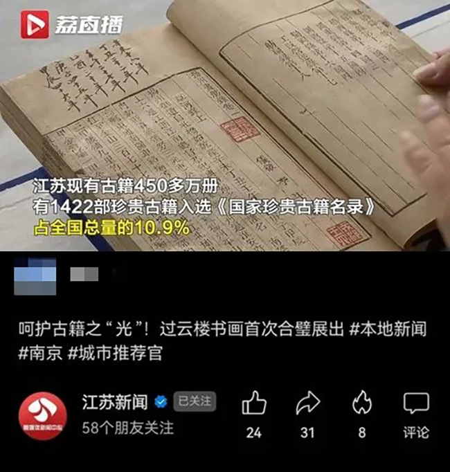 南京图书馆是过云楼藏书的重要公藏机构,收藏有过云楼旧藏古籍541部,3707册。古籍是传承中华文脉、坚守中华文化立场的精神根源,也是我们不忘本来、开创未来的发展基石。作为国内外古籍收藏的重镇,此次过云楼合璧展,是南京图书馆积极贯彻落实习近平总书记在文化传承发展座谈会上重要讲话精神和考察江苏重要讲话精神的具体实践。霞晖映世,源远流长,南京图书馆将持续坚定文化自信,坚持守正创新,担当使命、奋发有为,充分发挥公共图书馆传承弘扬中华优秀传统文化主阵地作用,为赓续江苏文脉、建设文化强省,为探索中华民族现代文明作出更大贡献!