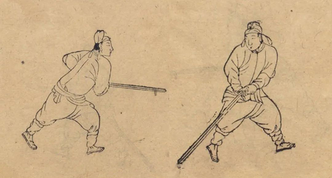 图6 《武备志》“朝鲜势法”之“御车势”(左)和“撩掠势”(右)
