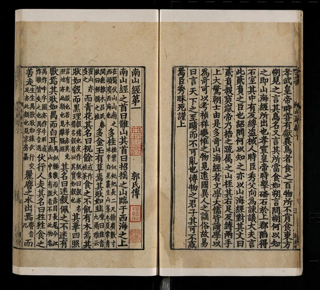《宋本山海經》十八卷,晋郭璞注,宋淳熙七年(一一八〇)池陽郡齋刻本。此本入選第一批《國家珍貴古籍名録》(名録號〇〇七七八)。