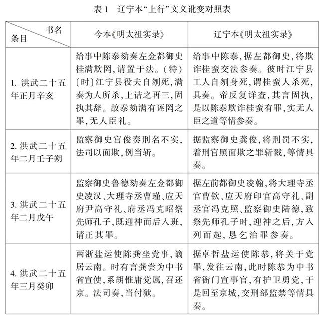 辽宁本与今本《明实录》在语言习惯上差异巨大,其句法、用词习惯并非全无规律可循。本节分析贯穿辽宁本全书的有关政令“上行”或“下行”文的行文规律与表达形式,以及其他情况可能导致的文义讹变。