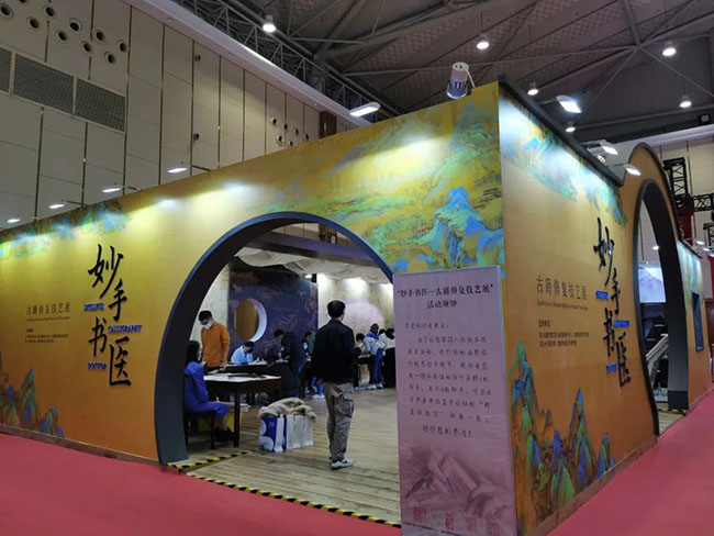 为深入贯彻落实习近平总书记关于中华优秀传统文化传承弘扬的系列重要论述精神,多渠道、多媒介、立体化地做好古籍大众化传播,让书写在古籍里的文字都活起来,11月25至28日,在第四届天府书展主会场成都世纪城新会展中心1号馆现场,四川省图书馆(四川省古籍保护中心)联合成都杜甫草堂博物馆、四川大学图书馆、成都中医药大学图书馆共同推出2022天府书展“妙手书医——古籍修复技艺展”。以“书医世界 典籍文化”为主题,全面展现传世古籍背后的古籍修复技艺及其相关文化内涵,让技艺中蕴含的中华优秀传统文化在更广阔空间里扎根生长,为古籍的活化利用探索出更多新途径。书展期间,大批读者纷至沓来,继去年成为2021天府书展网红打卡点后,又成为本届天府书展超高人气展区,并获2022天府书展优秀文化交流活动奖。