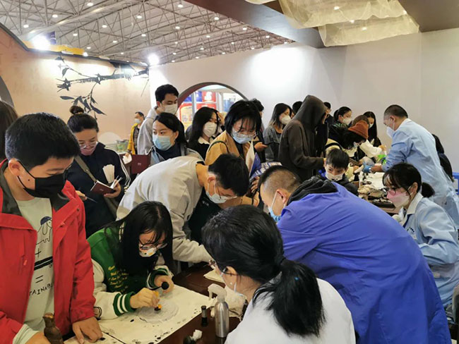 多角度展现,技艺与知识并俱。展览划分为演示区、展示区、体验区、打卡区,配合以《千里江山图》为灵感的展厅布置,使展区成为优秀传统文化氛围浓厚的沉浸式体验空间。演示区每天由一位修复师在现场做破损古籍的修复演示;展示区系统展示汉文古籍、西文古籍和书画装裱小样,供读者了解中国古代书籍制度与书画装裱制度的演进,实物展出古籍修复常用中草药,从中医药角度展现古籍修复中蕴含的自然之道;体验区推出线装书制作、雕版印刷、手工传拓互动体验,深受广大读者的热烈欢迎。选取木刻苏轼《水调歌头》、杜甫《春望》《望岳》、四川大学建校校徽、明刻本《本草纲目》川地出产草药插图用于雕版印刷和传拓体验,彰显浓郁四川特色。