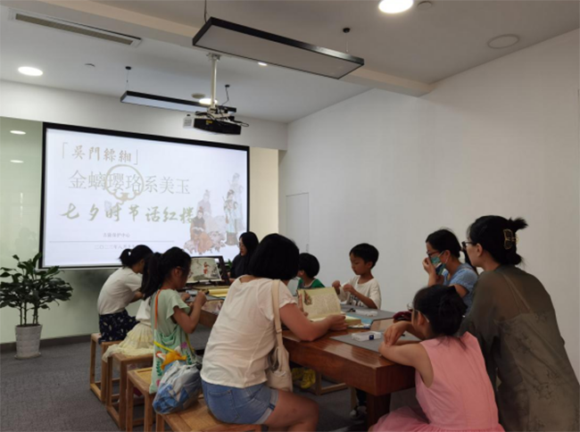 2023年8月19日下午14时,由苏州市古籍保护中心主办的“吴门缥缃”之“金螭璎珞系美玉 七夕时节话红楼”晒书活动,在苏州图书馆学古堂古籍主题空间开展,五组亲子家庭预约参与了活动。