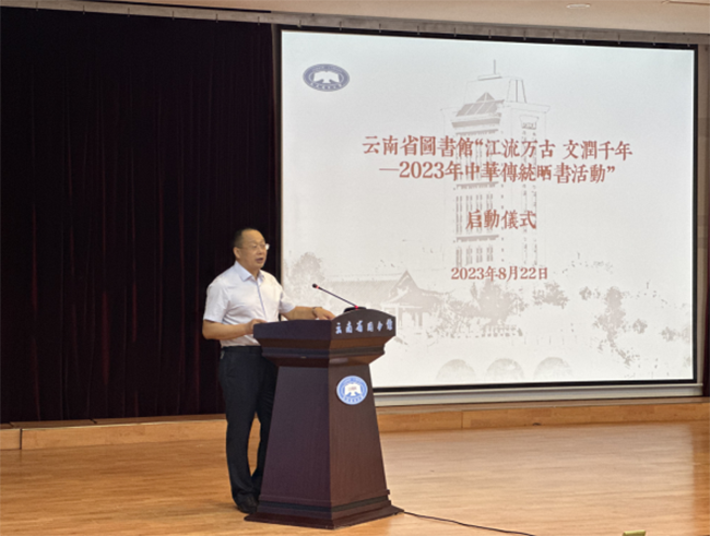 8月22日上午,云南省图书馆“江流万古 文润千年——2023年中华传统晒书活动”正式启动。图书馆领导、部分干部职工、读者朋友和新闻媒体单位参加启动仪式。云南省图书馆副馆长周宇青主持仪式,云南省图书馆馆长、云南古籍保护中心主任杨和祥馆长致辞并宣布活动正式启动。