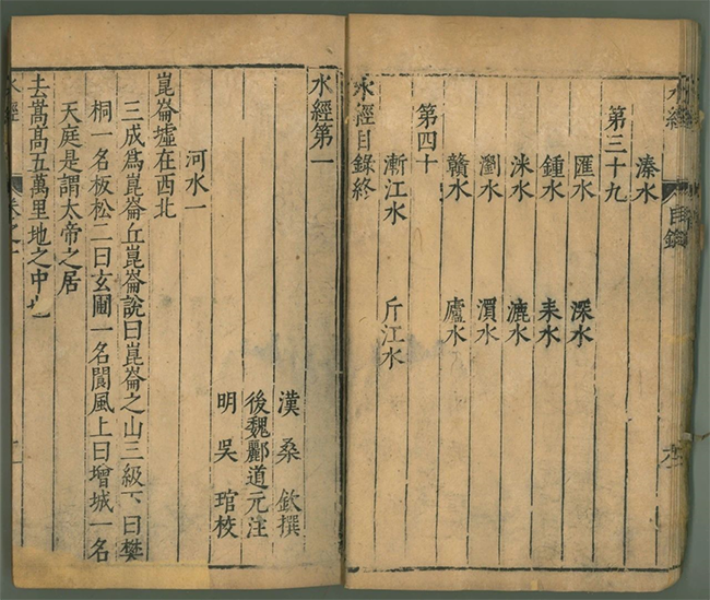 袁水最早见上古《水经》一书,有馆藏明代刻本北魏郦道元《水经注》: