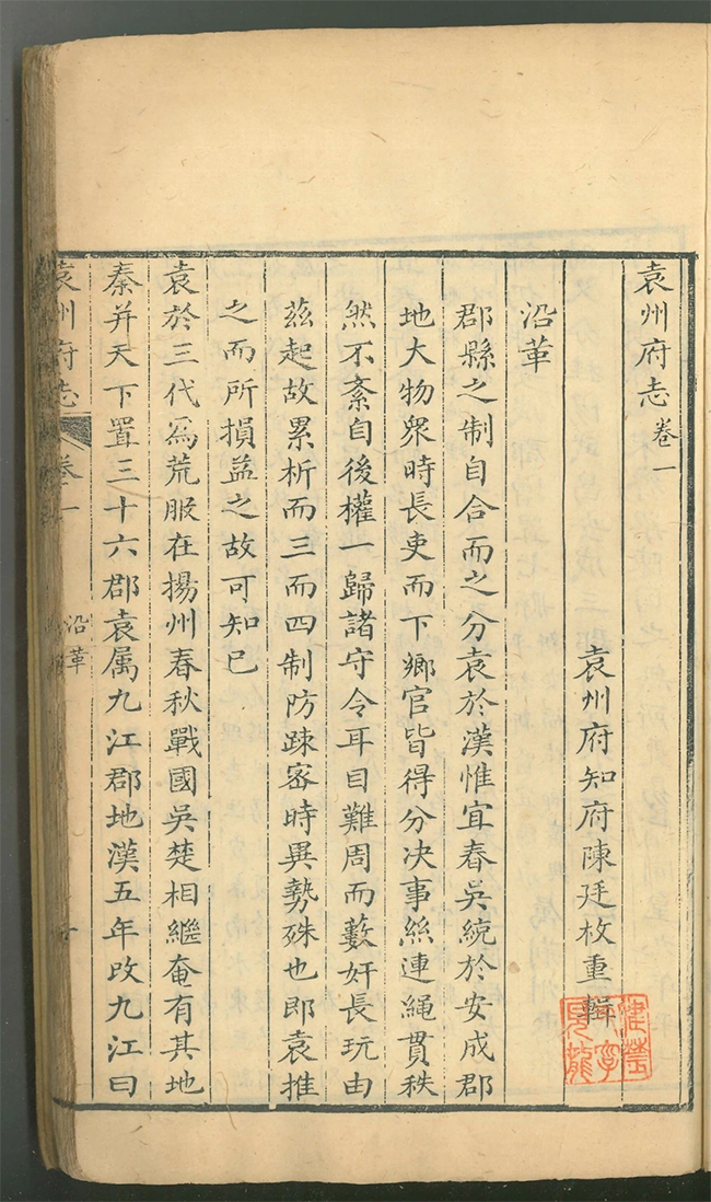 [乾隆]《袁州府志》 三十八卷首一卷(清)陈廷枚修(清)熊日华等纂 清乾隆二十五年(1760)刻本(一)