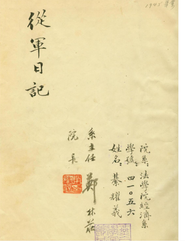 关键词:綦耀义;《从军日记》;知识青年从军;全面抗战