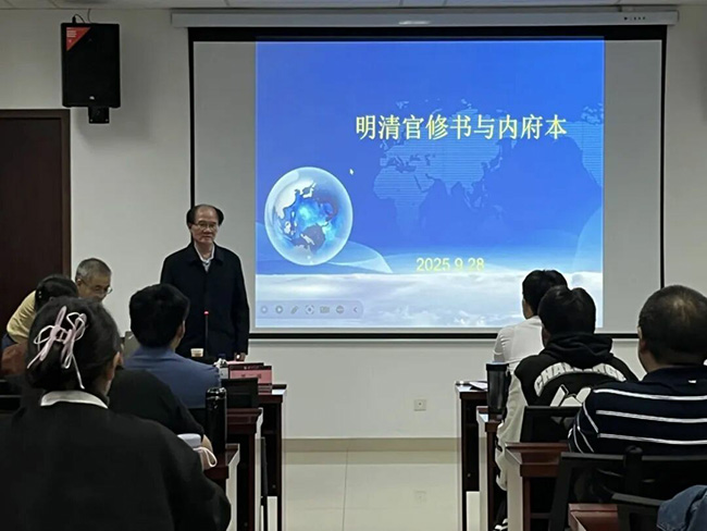 陕西师范大学历史文化学院贾二强教授做题为《明清官修书与内府本》的主题讲座,向大家详细介绍了明清内府修书、明内府本与清内府本。贾教授的讲座生动有趣,令大家领略到了古籍的魅力。