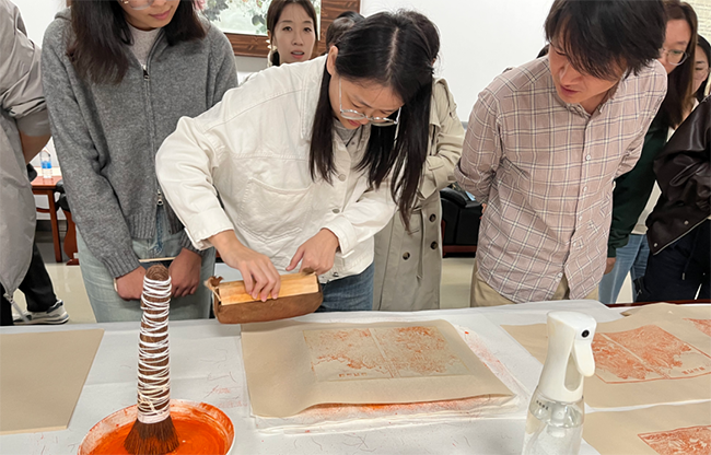 讲座结束后,在场嘉宾赴长安校区图书馆古籍查阅室参观了“声流金石 纸落云烟——西北大学图书馆藏善本碑帖展”,并参加了雕版印刷体验活动。
