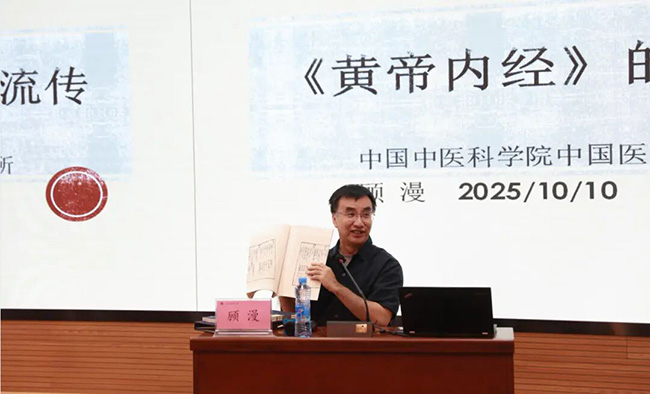 中国中医科学院研究员、中国医史文献研究所中医文献研究室主任顾漫带来“《黄帝内经》的版本流传”专题讲座,系统梳理《黄帝内经》之《素问》《灵枢》的传承历史,重点介绍金刻本、元读书堂刻本等重要版本的文献学价值。讲座内容翔实、版本考据严谨,极大增进了学生们对中医古籍价值的认知。江西中医药大学图书馆、江西省图书馆领导以及学校相关院系师生代表200余人参与活动并聆听讲座。