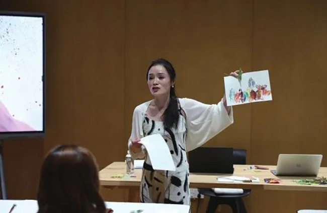 俞晓霞或许是三个“素人”策展人中距离展览最近的一位——她是上海市紫竹园中学的美术老师。中学时,她笔下的深秋梧桐已呈现“橙黄底色泛着橄榄绿”的细腻层次,被老师评价“眼里有别人没看到的细节”。策展时,她以“五行五色”为线索,从馆藏古籍中挑选出与六种传统色对应的典籍,再搭配学生创作的水墨国画、扎染玩偶、浅青陶艺,让古籍中的色彩跨越千年,与现代审美碰撞。
