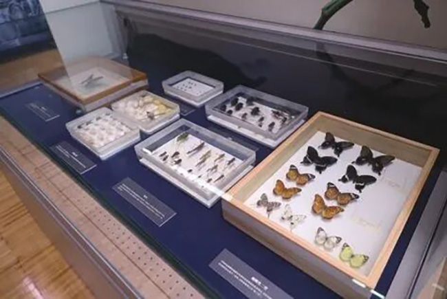 不久前记者专程去上图东馆探访了“芸编虫语——古书里的昆虫百态”展览。虽仅设两座展柜,一个陈列昆虫标本,一个对应古籍善本,陆孙却将展览内容巧妙划分为“蝴蝶翩跹”“蚕丝纤莹”“萤火微光”与“聆听虫鸣”四大板块。