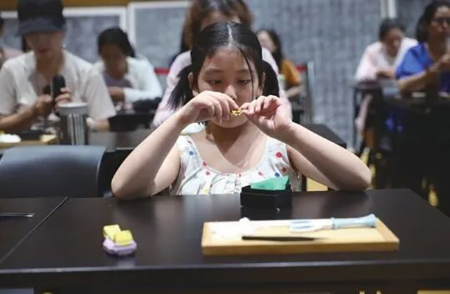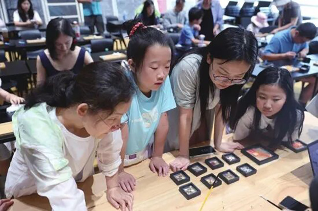 青少年参观“古典美的中国符号——非遗盘扣文创系列之古籍灵光”
