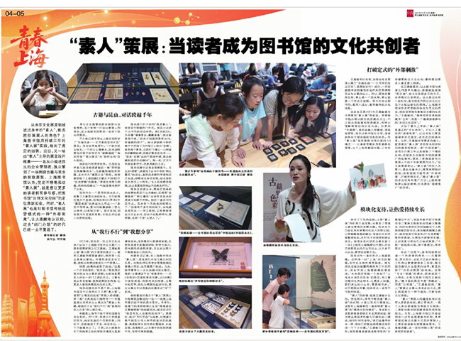 从这个意义上来讲,“素人展”是真正的“文化共创”。它引入了真实的“读者视野”,以此来吸引更多读者来关注展览,进而走进阅读本身。当然,王晨敏还有更多的雄心,就是通过“素人展”来给原本相对封闭的图书馆制造一些“外部刺激”。该项目开展三年以来收获了不错的反响,还被选为全国图书馆阅读推广特色案例,展现了普通读者作为策展人不同于专家策展的活力。“与专家策展相比,‘素人展’的切入点更小,展品总量也少,策展周期相对较短,却能给图书馆带来‘外部刺激’,打破思维定式。”通过“素人展”的多元视角和推广方式,上图能够培养出新的读者,切实落实“阅读推广”的目标。