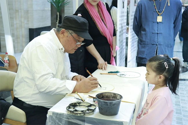 古籍装帧、纸浆补书、团扇绘画,书画修复、碑刻传拓、鸟虫篆刻……在传统文化展示区,国家级古籍修复技艺传习中心复旦大学传习所的各位导师携学生现场展示传统技艺。