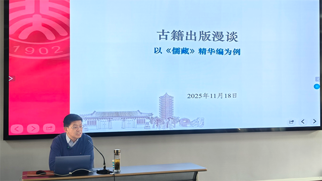 本次讲座主题为“古籍出版漫谈:以《儒藏》精华编为例”。马辛民结合自身《儒藏》“精华编”的编纂过程和出版实践,向太原理工大学的师生介绍了古籍出版的相关情况,揭示了一部权威古籍整理著作从文献调研到成书出版的完整流程与核心环节,为非专业领域的师生及爱好者普及了古籍出版的相关知识。