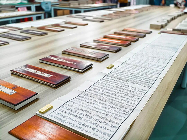 本次展览系统呈现了乾隆版《大藏经》修复阶段性成果,集中展出包括修复前后的经卷、修复用纸、残片、褙纸、虫蛀残留物,以及修复工具、纸浆补书机等实物,完整再现了专业而严谨的修复实景。同时展出的还有藏经柜、清代木刻版等相关文物。