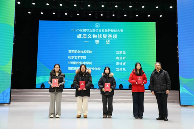 近日,由全国文物保护产教融合共同体主办、莱芜职业技术学院承办的“传承匠心技艺 培育文保新人”2025全国职业院校文物保护技能大赛在山东莱芜落幕。甘肃省图书馆与兰州职业技术学院联合培养的2023级文物修复与保护专业学生高婷婷凭借扎实的专业功底与出色的实操能力,在纸质文物修复赛项中斩获一等奖。