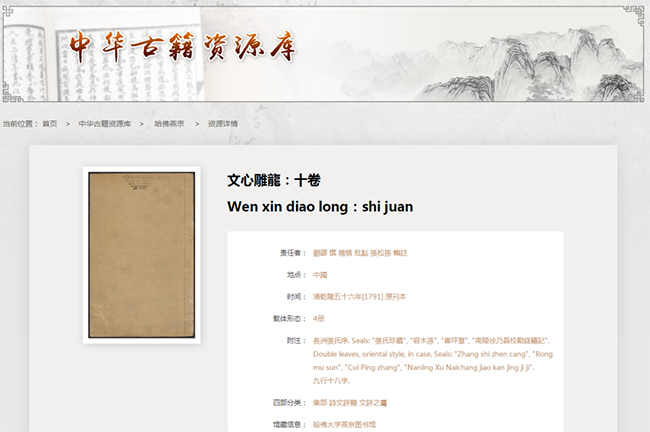 哈佛燕京图书馆捐赠古籍数字资源发布